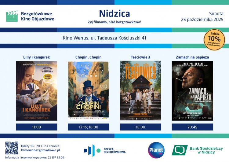 Harmonogram projekcji: 11:00 – Lilly i kangurek 13:15 – Chopin, Chopin 16:00 – Teściowie 3 18:00 – Chopin, Chopin 20:45 – Zamach na papieża